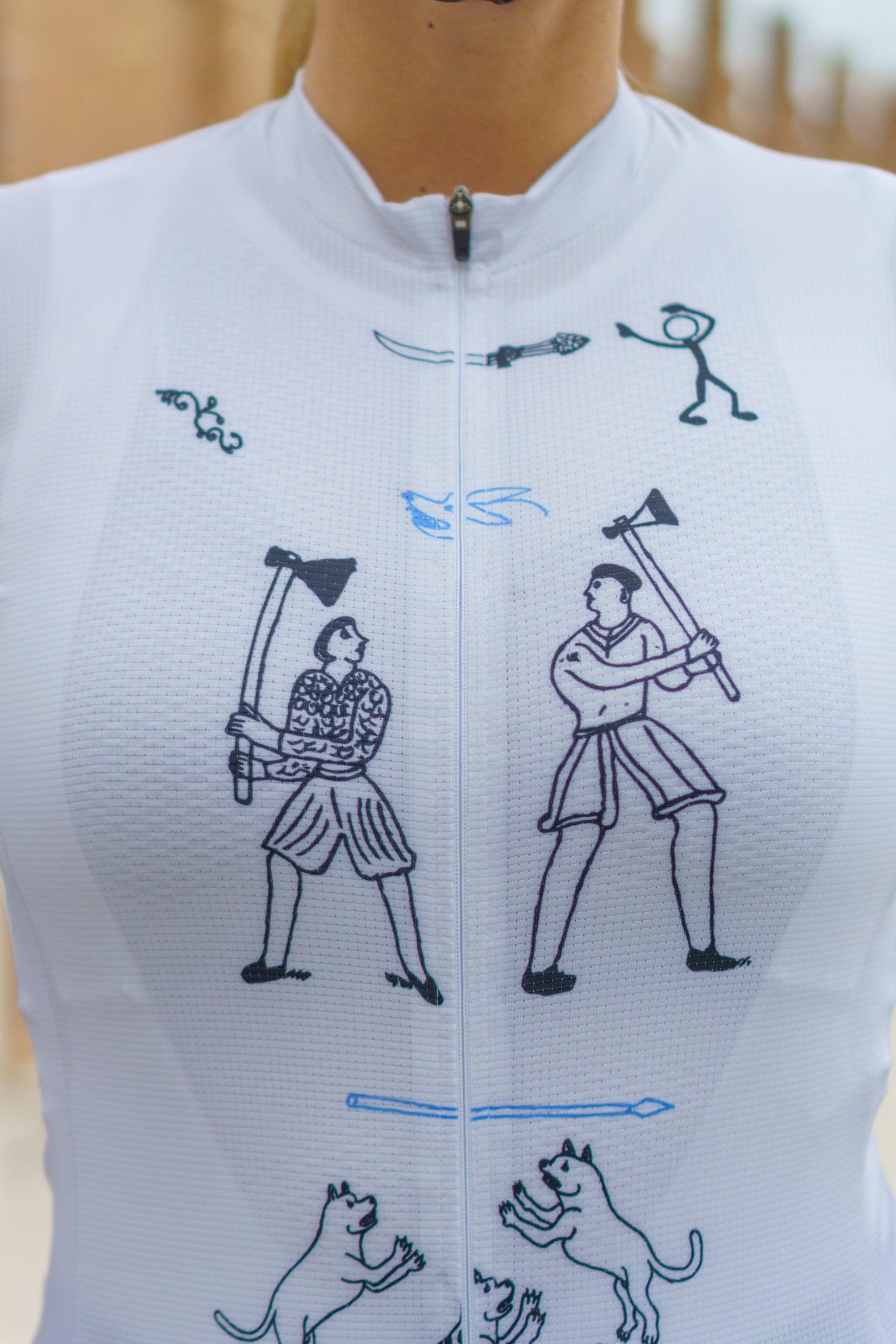 ミニマリズムのエレガンスと大胆な芸術の力を体現したStickman Axes Jerseyで魅力を引き立てましょう。このオリジナルジャージは、力強さと勇気を想起させるダイナミックなシーンを描いた印象的なイラストのキャンバスとして機能します。跳ねる犬、複雑な武器、そして激しい姿が描かれ、そのデザインは執拗な追求と勇気の物語を語っています。