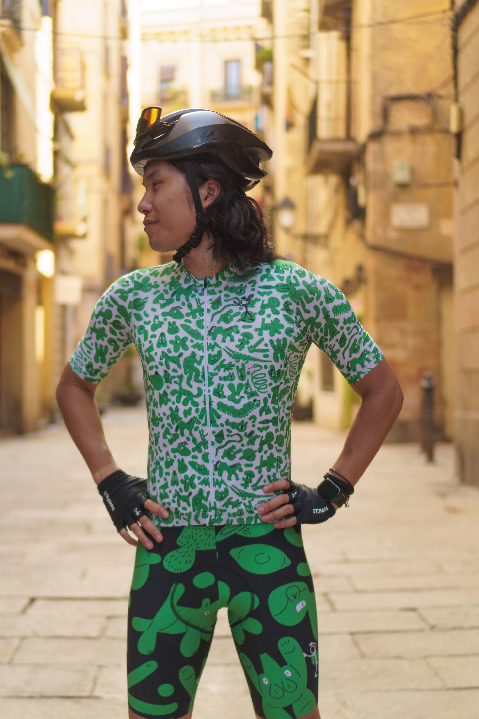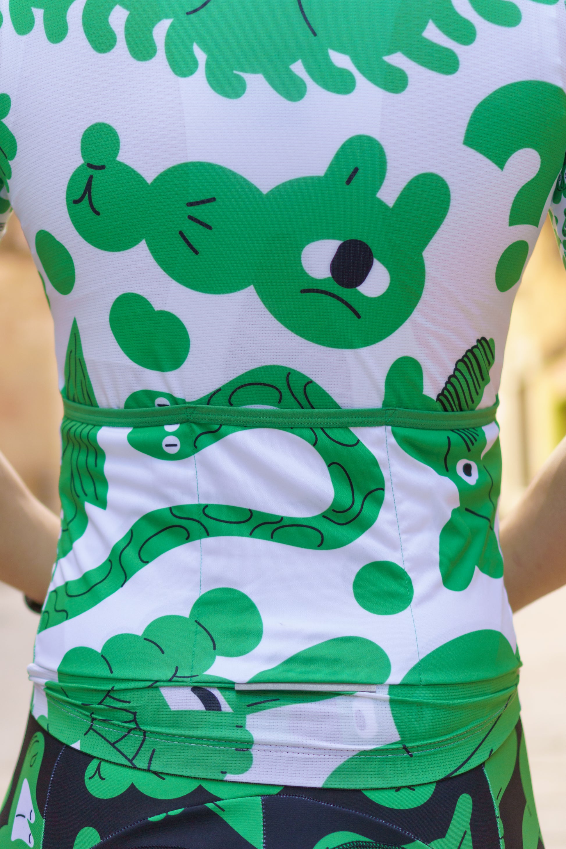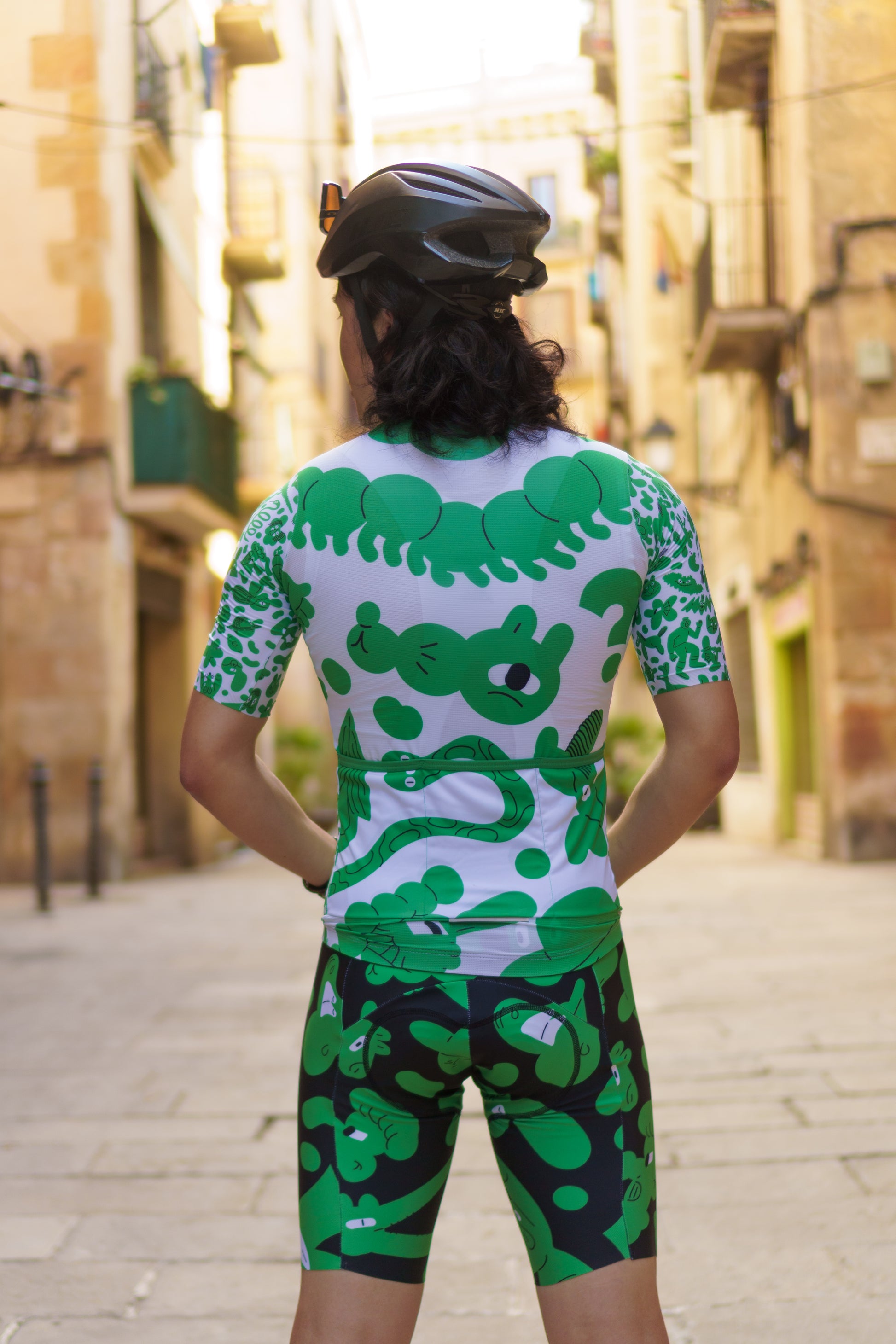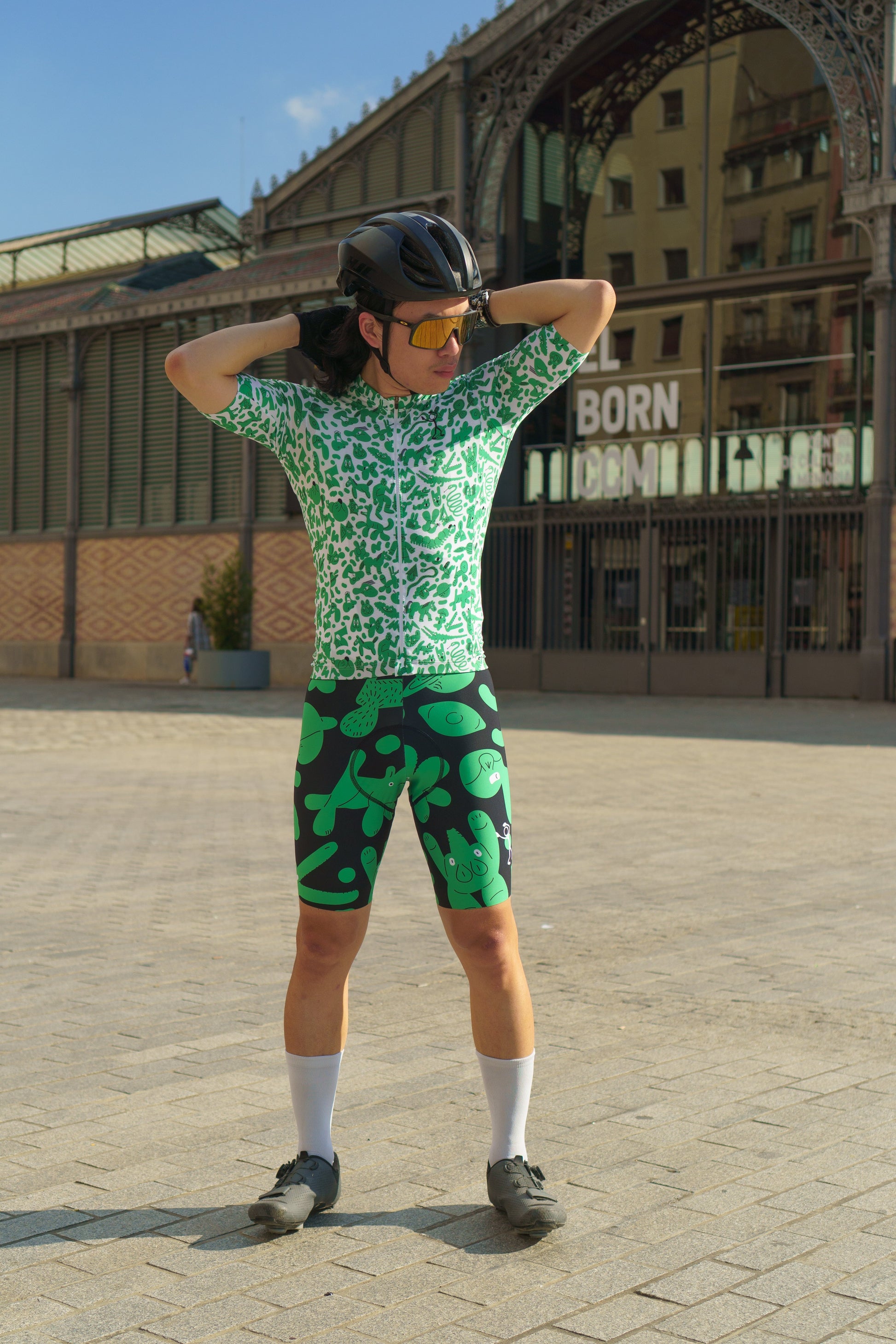 その 太字のグラフィック ジャージの ビブショーツは、成長と活力を象徴する活気ある緑のパレットでBrolgaの象徴的なキャラクターをフィーチャーしています。 アーティスティックパターン 慎重に配置されており、道路上で目立つ一貫した外観を作り出しています。から作られています 高性能ファブリック, このキットは通気性と柔軟性を確保しており、激しいライドにもゆったりとしたクルーズにも最適です。これ エクスクルーシブコラボレーション アートとスポーツの交差点を表現し、サイクリストに個性を表現するユニークな方法を提供します。