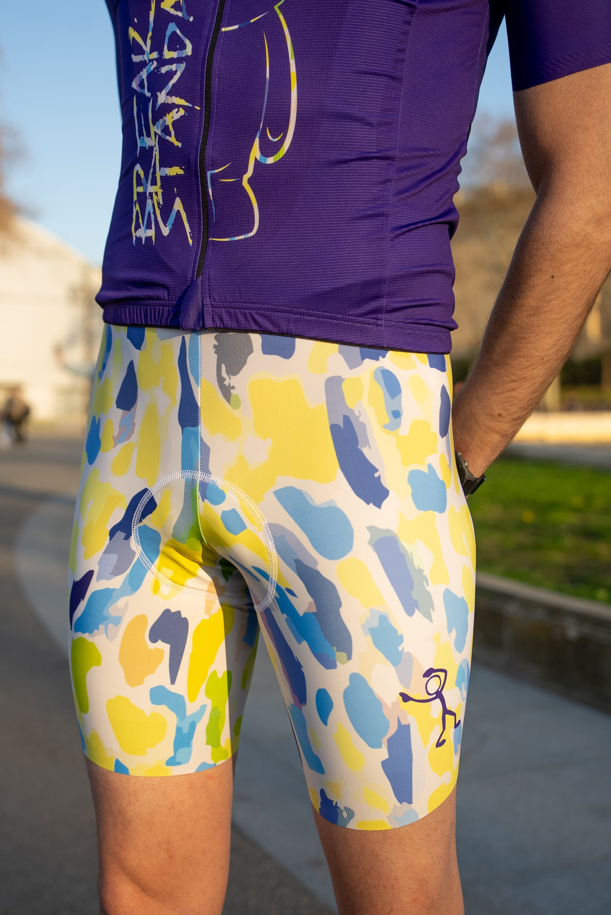 マルチカラーのデザインは、イエロー、ブルー、やわらかなニュートラルカラーを組み合わせ、動きの中で生き生きと映えるダイナミックなパターンに仕上げています。ミニマルな Stickman ロゴと組み合わせることで、表現力あるデザインと高い機能性の完璧なバランスを保っています。