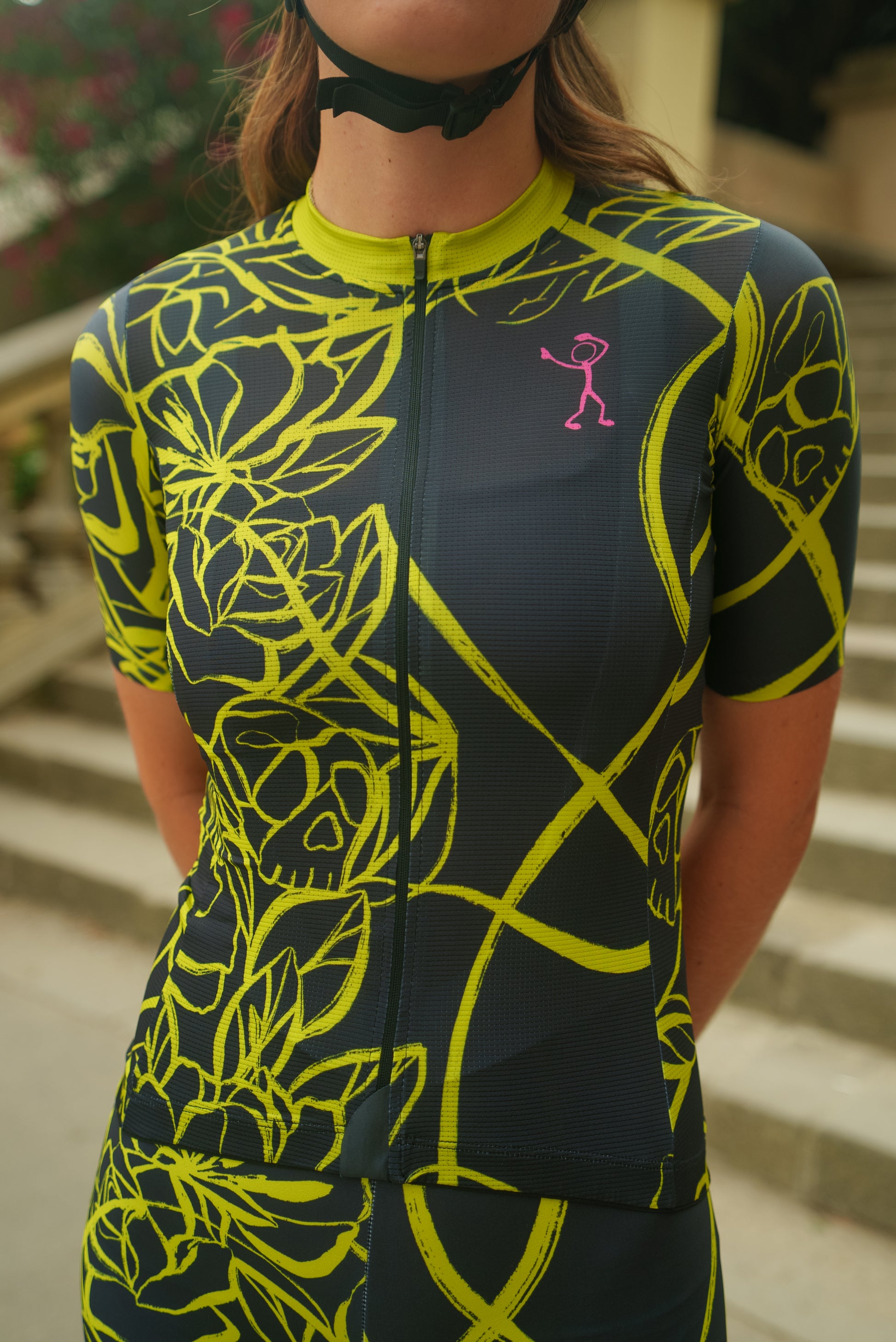 The Skullify Original Jerseyは、ダークな一面を持つ花柄の嵐です。大胆なスカルモチーフがネオンの植物と絡み合い、美しさと不気味さが同居するパターンを描いています。通気性が良く、空力的で、刺激を与えるために作られた—まさにフルボリュームのStickmanです。