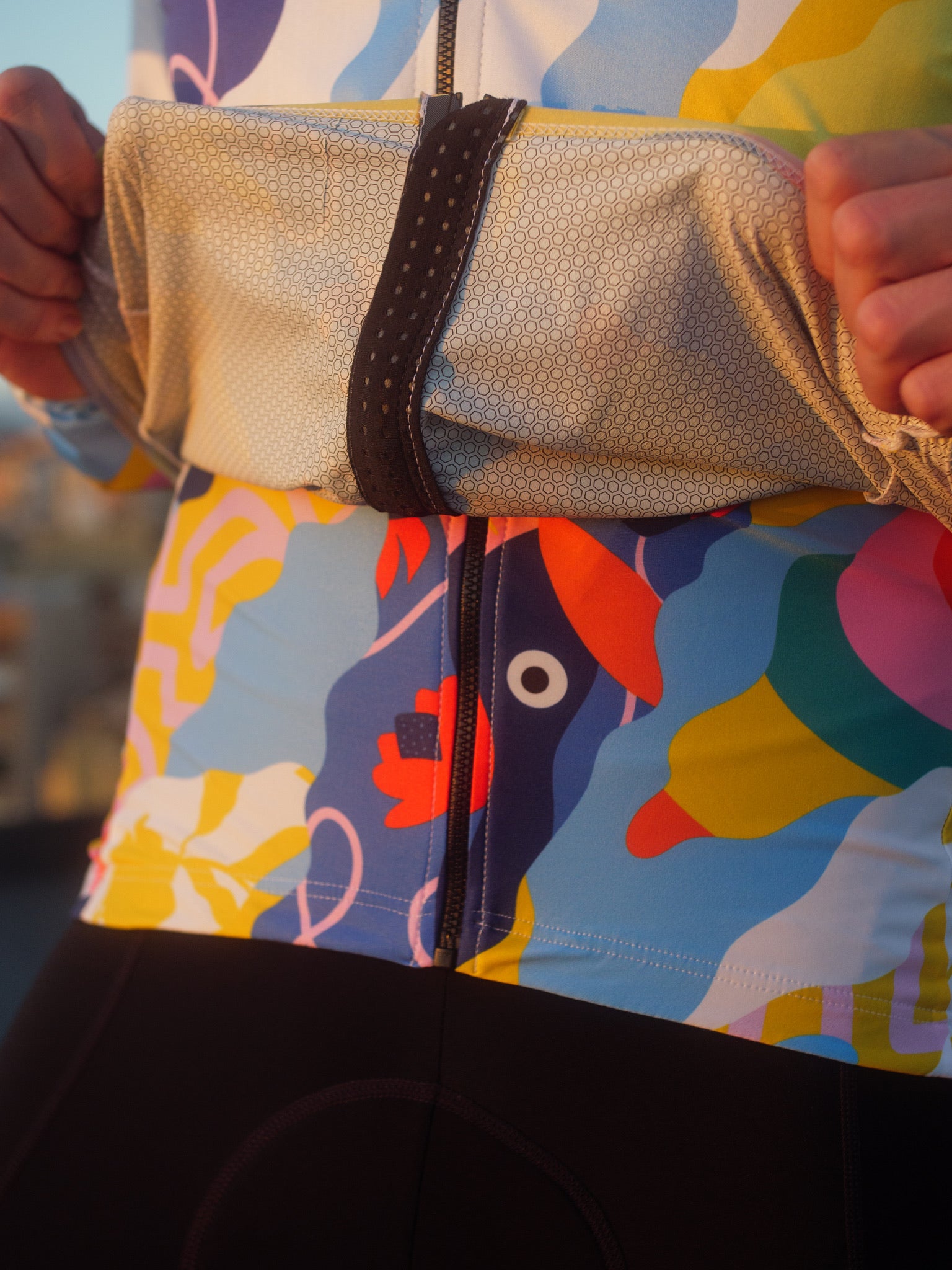 Stickman Brolga 2 윈드브레이커로 페이스를 설정하세요. 자연의 리드미컬한 흐름에서 영감을 받은 생동감 넘치는 패턴과 고성능 디자인의 매력적인 조화입니다. 다채롭고 추상적인 비주얼은 일출의 색조에서부터 열린 풍경의 유동적인 형태까지, 야외의 역동적인 아름다움을 불러일으킵니다. 이 윈드브레이커는 최적의 바람 저항력과 편안함을 제공하도록 제작되어 스타일을 희생하지 않고도 보호받을 수 있습니다. Brolga 2는 Stickman의 시그니처 미학을 포착하여 모든 라이딩에서 돋보일 수 있게 해줍니다.