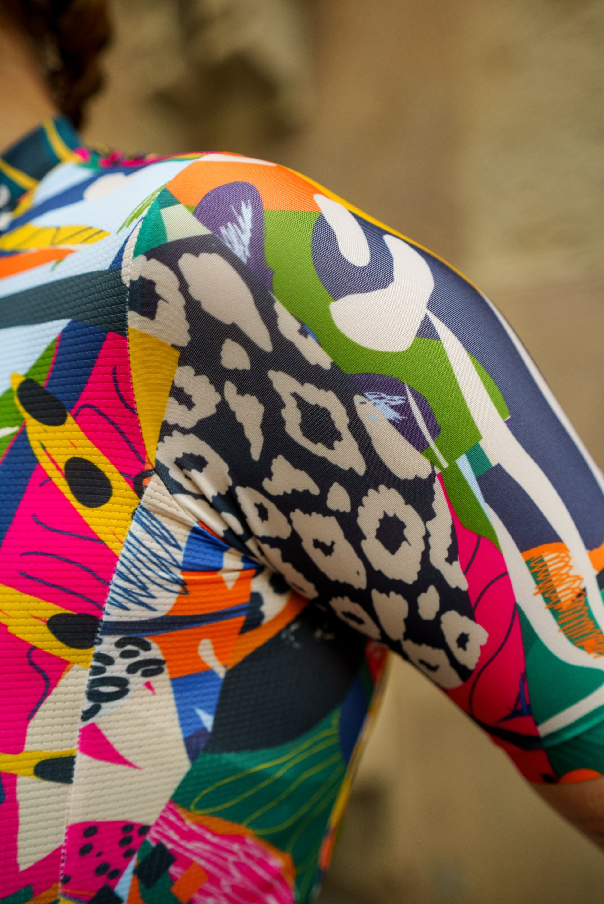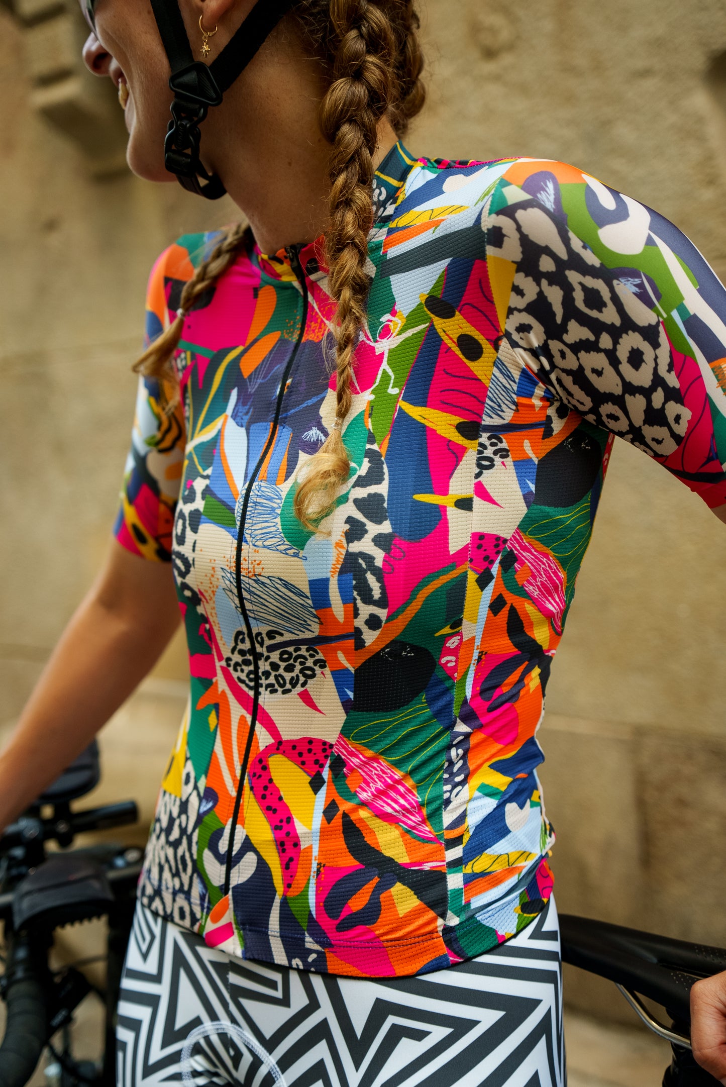 바르셀로나에서 제작됨 최고급 이탈리아 기술 원단으로 제작되어 밀착감 있고 편안한 공기역학적 핏을 제공합니다. 초경량 통기성 소재로 빠르게 건조되며, 뜨거운 도시의 하루와 강렬한 라이딩을 견딜 수 있도록 설계되었습니다.