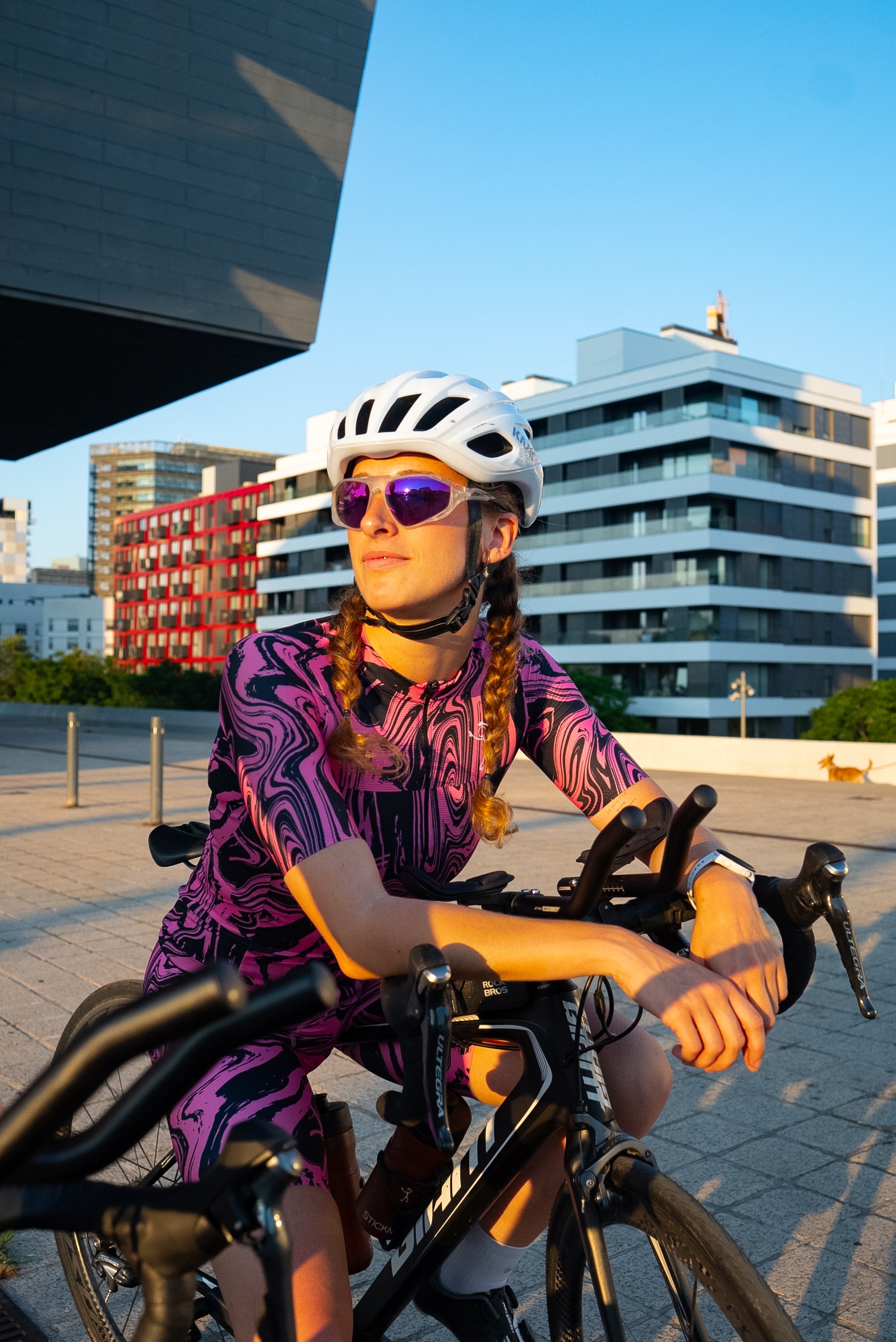 바르셀로나에서 제작됨 최고급 이탈리아 기술 원단으로 제작되어 밀착감 있고 편안한 공기역학적 핏을 제공합니다. 매우 통기성이 뛰어나고 빠르게 건조되며, 뜨거운 도시의 하루와 강렬한 라이딩을 견딜 수 있도록 설계되었습니다.
