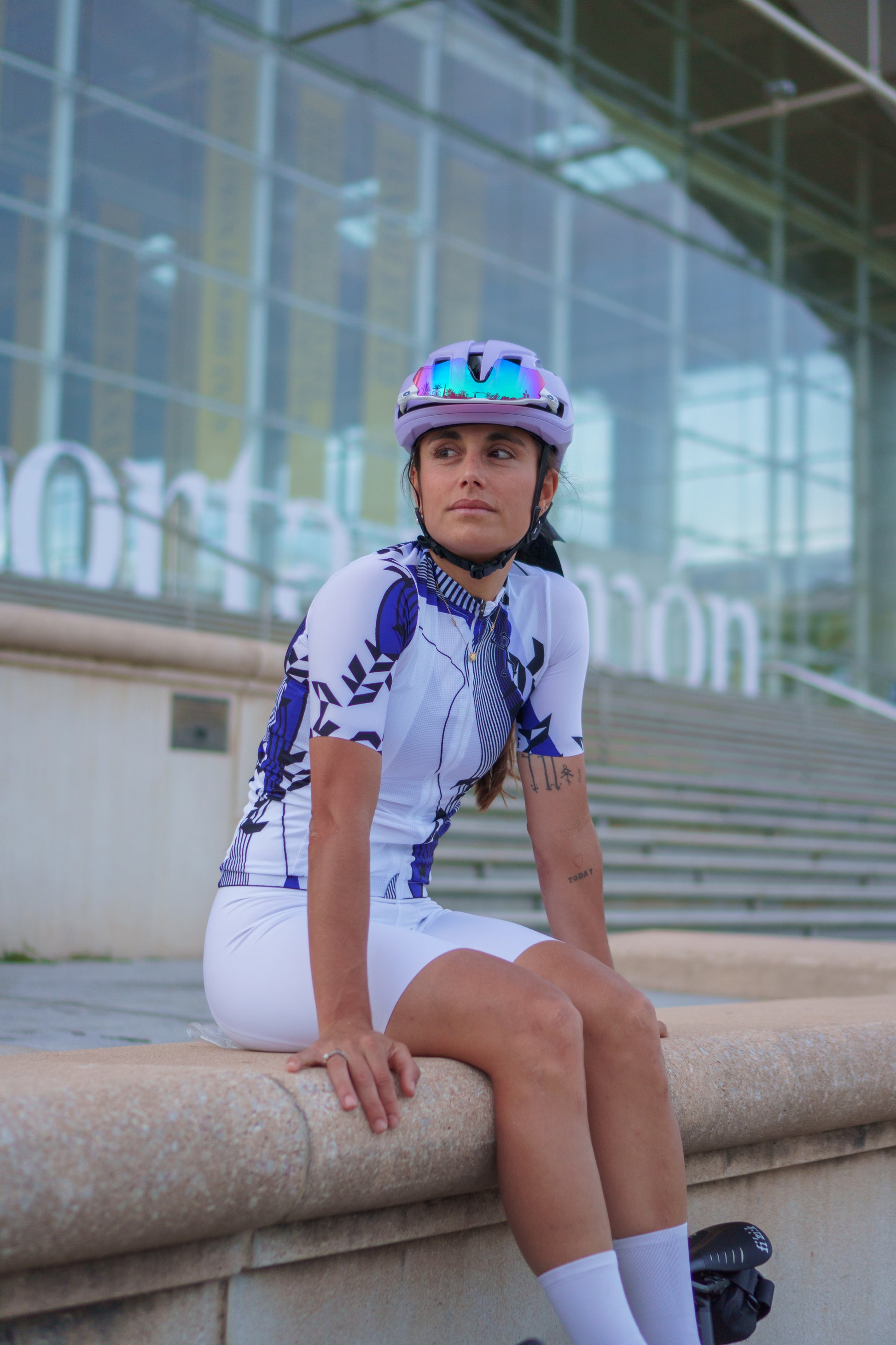 파란색, 검은색, 흰색의 추상 기하학적 패턴이 돋보이는 시각적으로 인상적인 저지. 디자인은 역동적인 선과 대담한 형태로 움직임의 착시 효과를 만들어내며, 성능과 예술적 감각을 모두 중시하는 사이클리스트에게 완벽합니다. 가볍고 통기성이 뛰어나며, 라이딩 중 편안함과 효율성을 보장합니다.