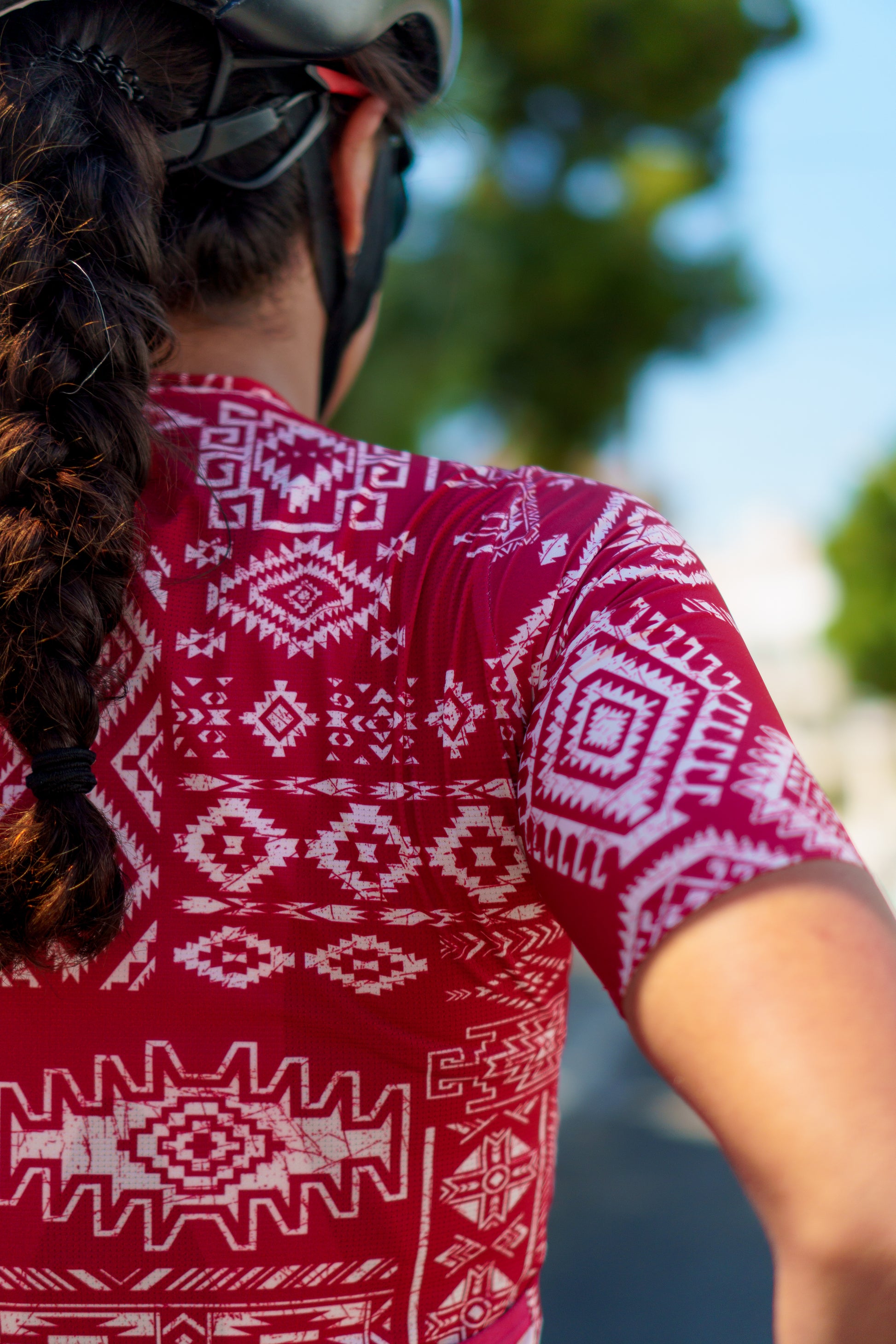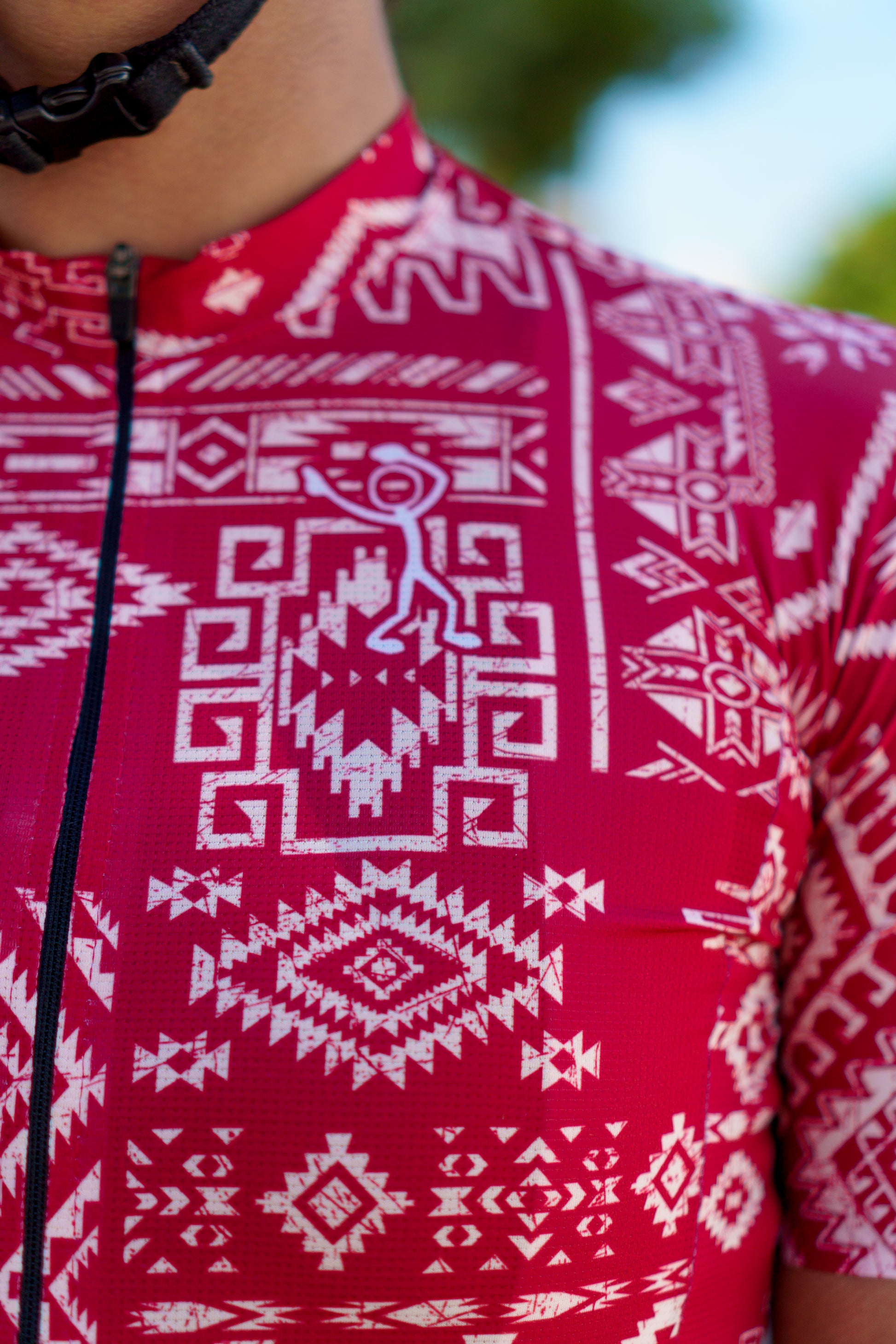 Stickman Sleek Kit를 소개합니다 - 대담한 패턴과 비길 수 없는 성능이 융합된 제품입니다. 이 눈에 띄는 앙상블은 화려한 빨강과 흰색 디자인에 정교한 기하학적 문양이 특징으로, 스타일과 도로에서 모두 주목받을 것입니다. 저지는 전통적인 패턴과 현대적인 변주가 조화롭게 어우러진 디자인을 선보이며, 바지는 눈에 띄는 체크무늬 패턴으로 완성합니다.