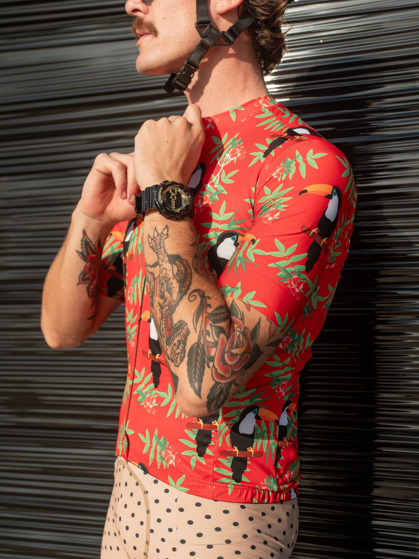 열대의 재미를 사랑하는 디자인, '홀리데이즈’는 Stickman의 첫 번째 디자인이었습니다. 그것은 우리만의 생생하고 다채로운 개성을 공유합니다. 그것 나타냅니다 브라질에 있는 우리의 고향인 놀라운 큰부리새는 열대 낙원에서 여행과 휴가를 보내는 느낌을 줍니다. 이었다 확실한 당신은 Stickman의 밝고 활기찬 성격을 사랑합니다 '홀리데이즈' 스타일로 당신을 감싸고 당신의 사이클링을 생생하게 만들어주는 디자인.