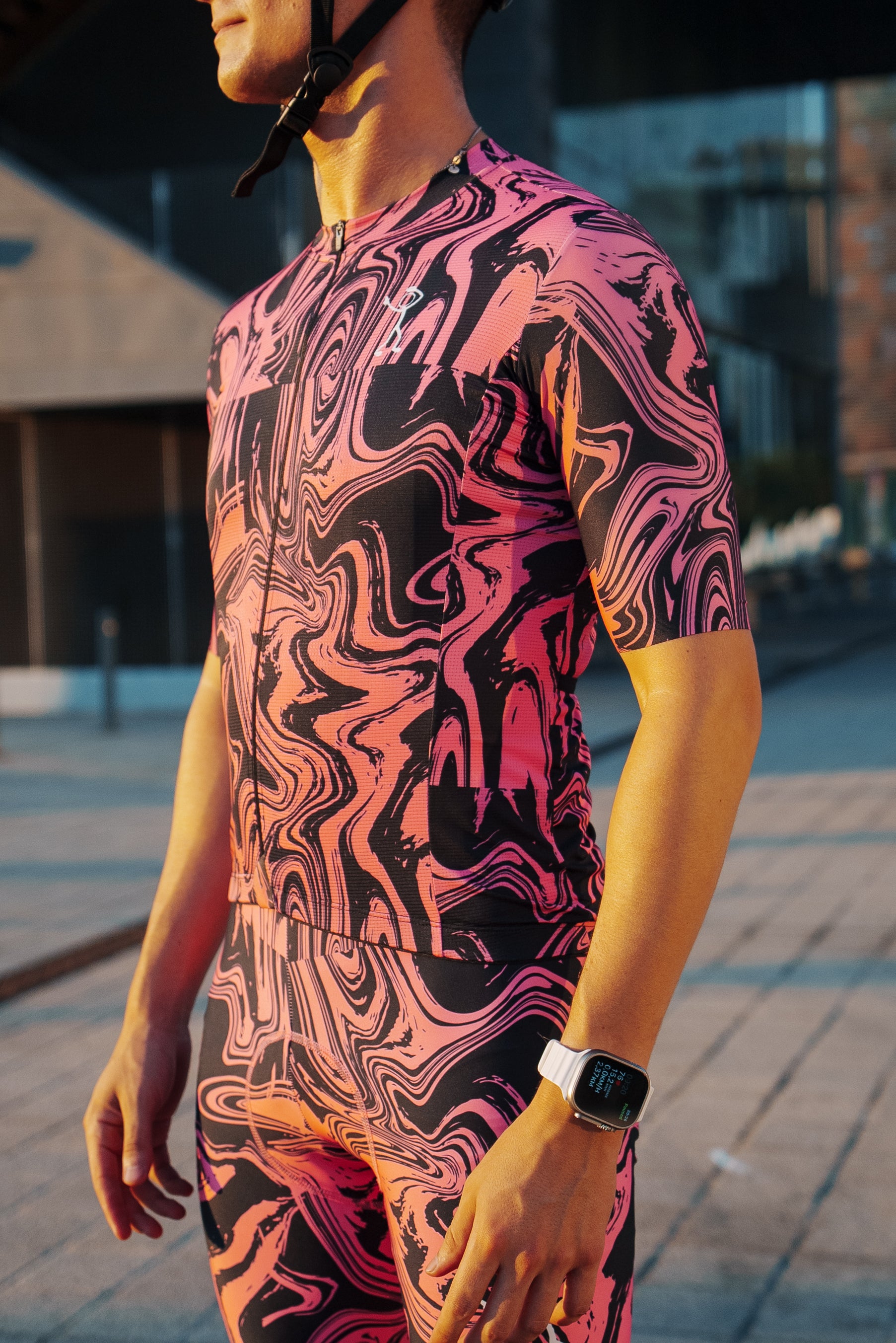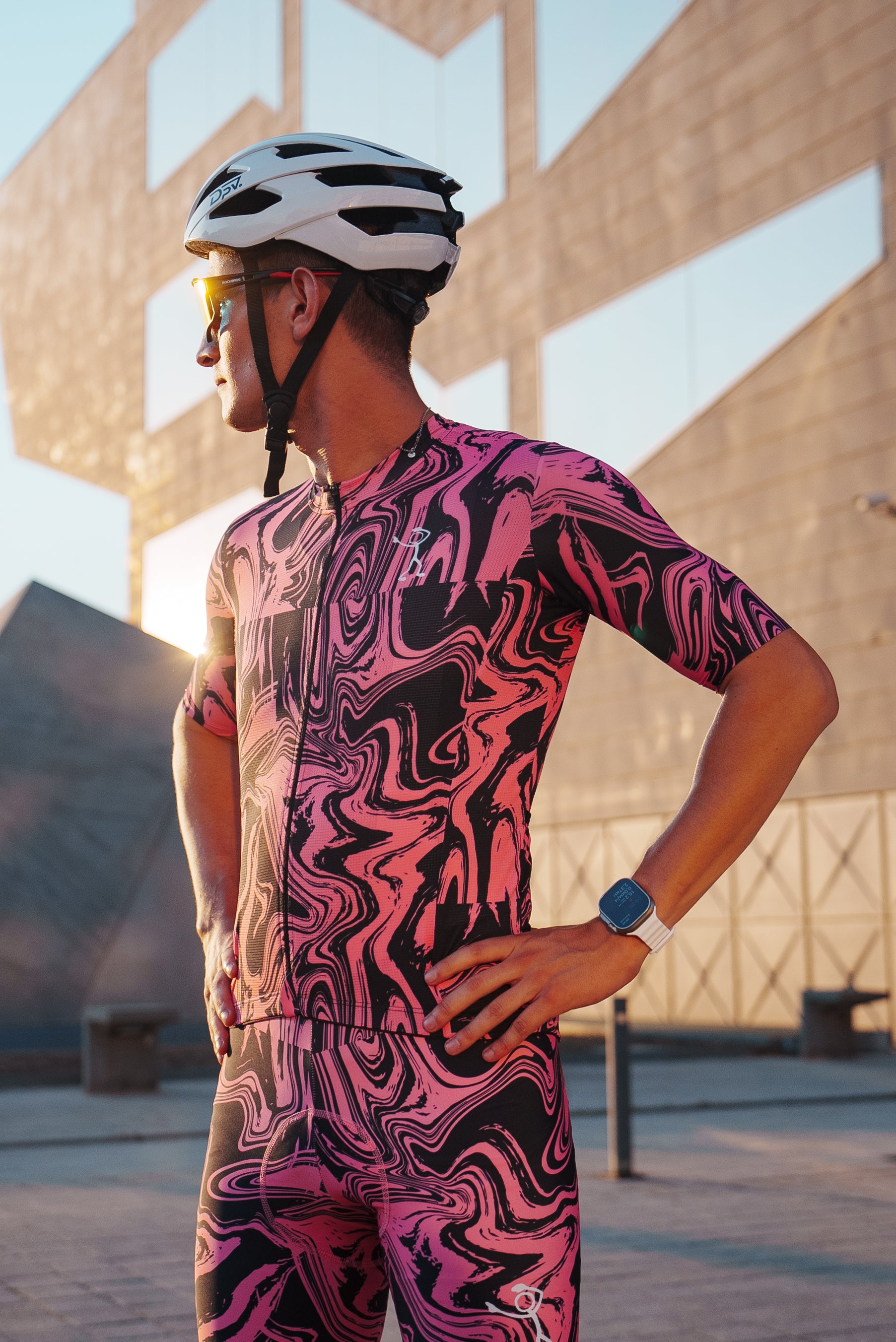 The Marble Original Jersey is a visual riot: neon pink and obsidian black crashing together in a marbled swirl that screams speed, energy, and chaos in motion. Built for performance but designed to turn heads, it’s Stickman’s signature style in its rawest form.