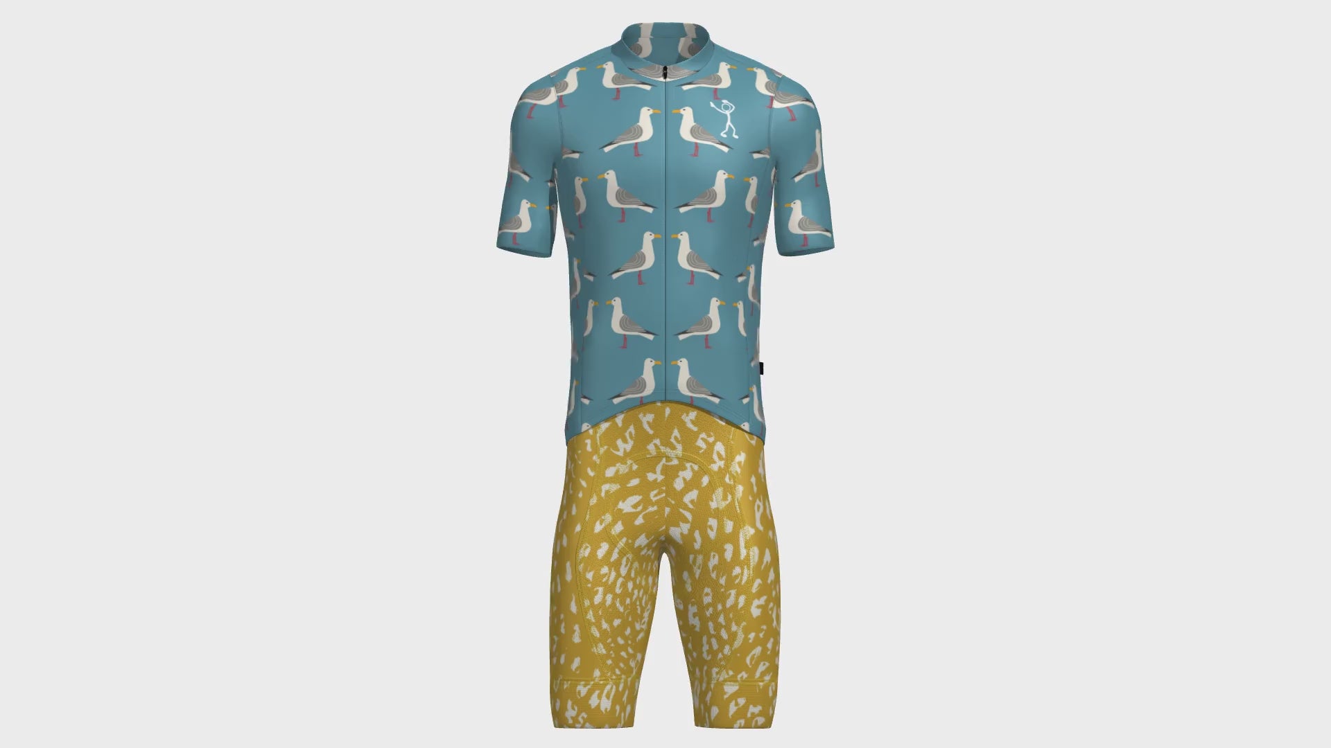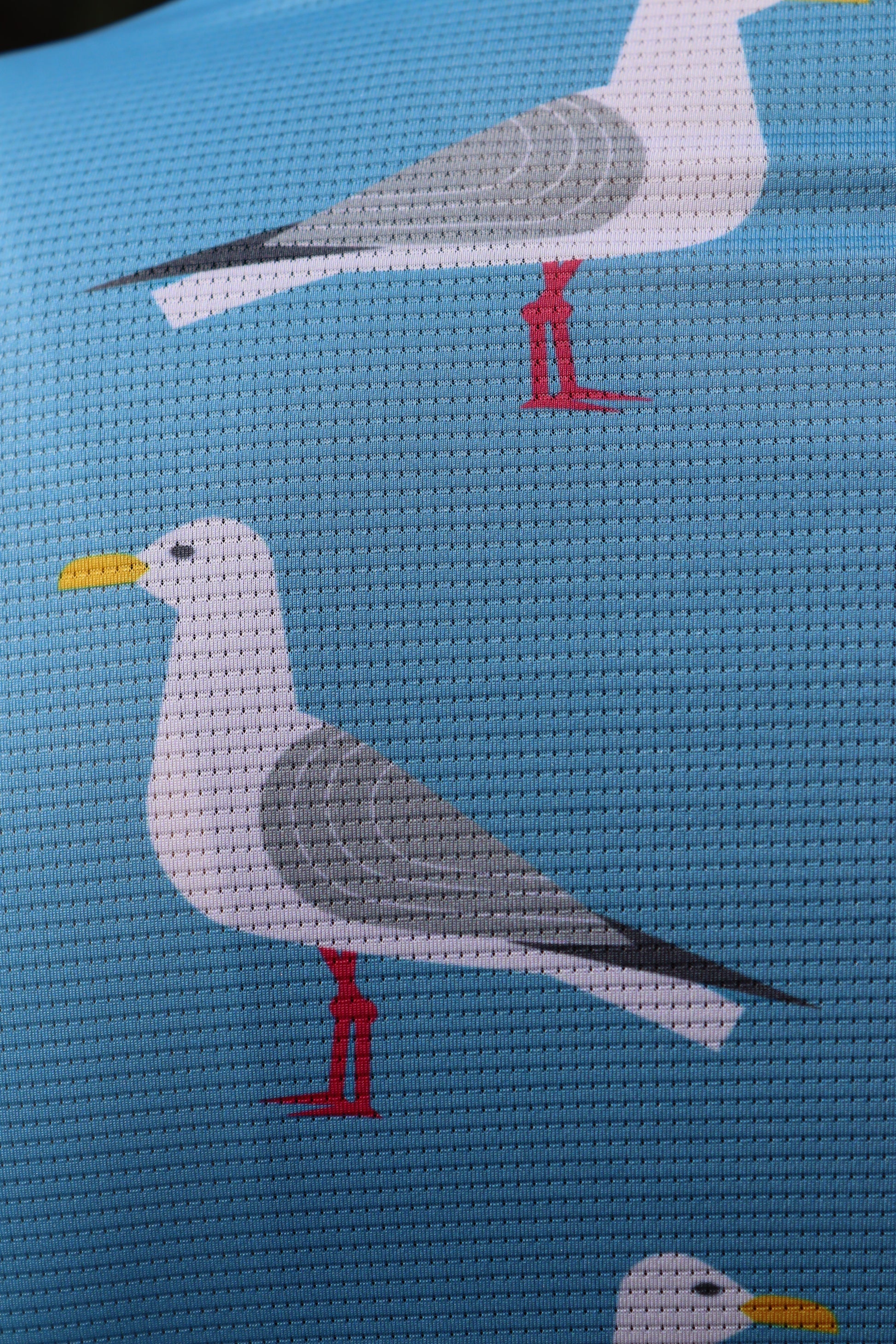 You’ll look as cool as a coastal day, as you ride along with the sea breeze, in our Stickman ‘Seagull’ Cycling Jersey. The soft and light blue is contrasted with the graphic design of sea birds, to produce a chilled out, summer cycling jersey for a sunny coastal day on two-wheels.