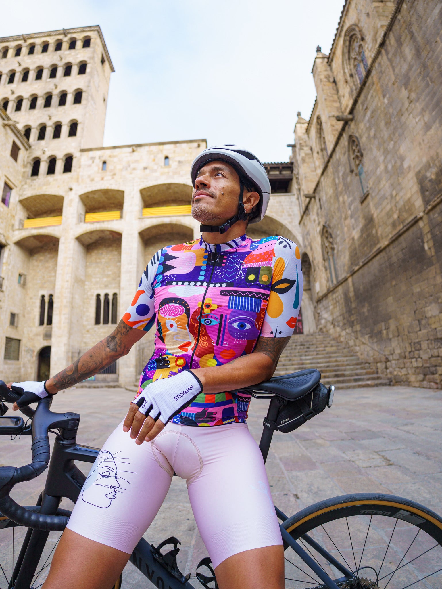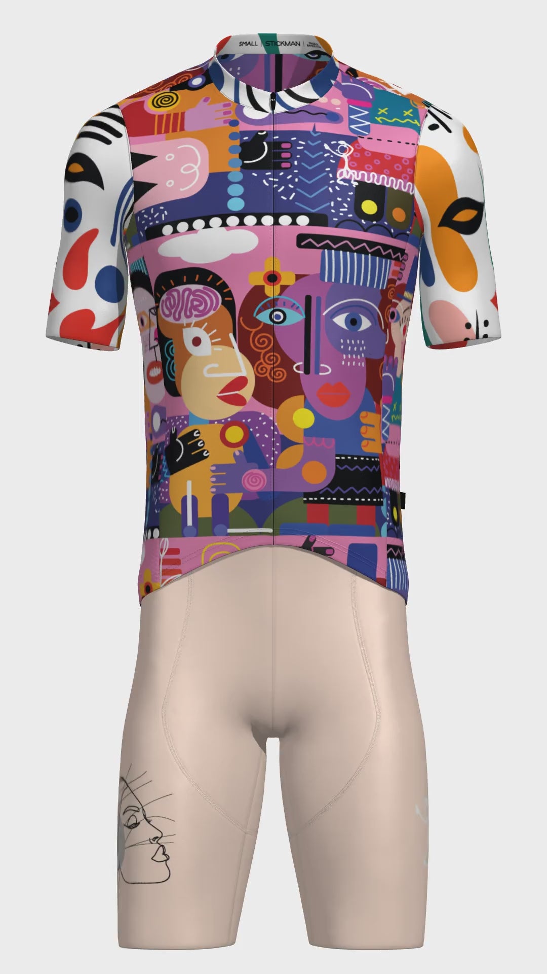 The Woman Stellar Bib pairs minimalist elegance with high-performance functionality. Its soft blush tone, accented with a clean line drawing of a woman's face, represents a blend of grace and strength. Made to provide exceptional support and comfort, designed for riders who value style as much as performance.