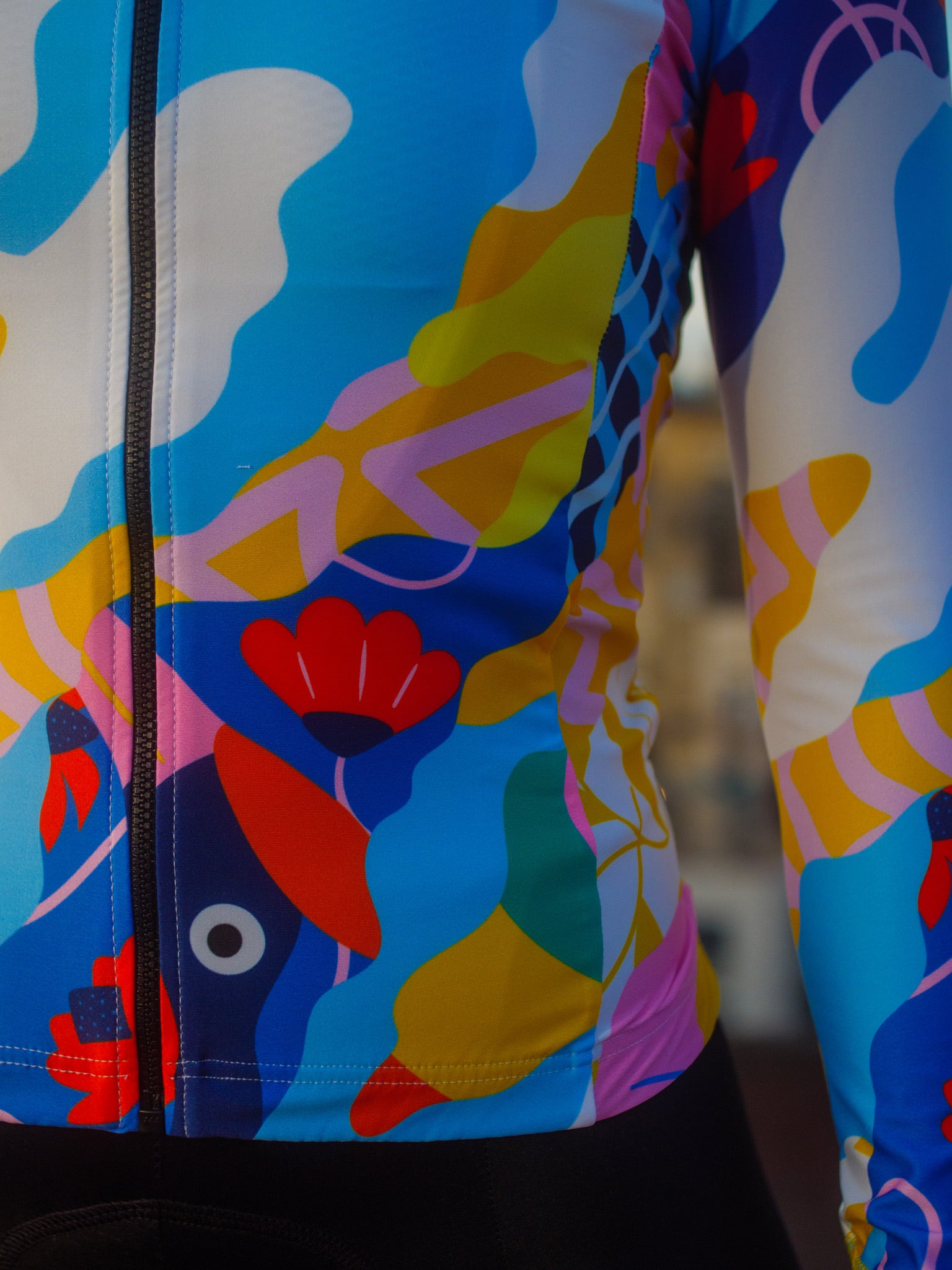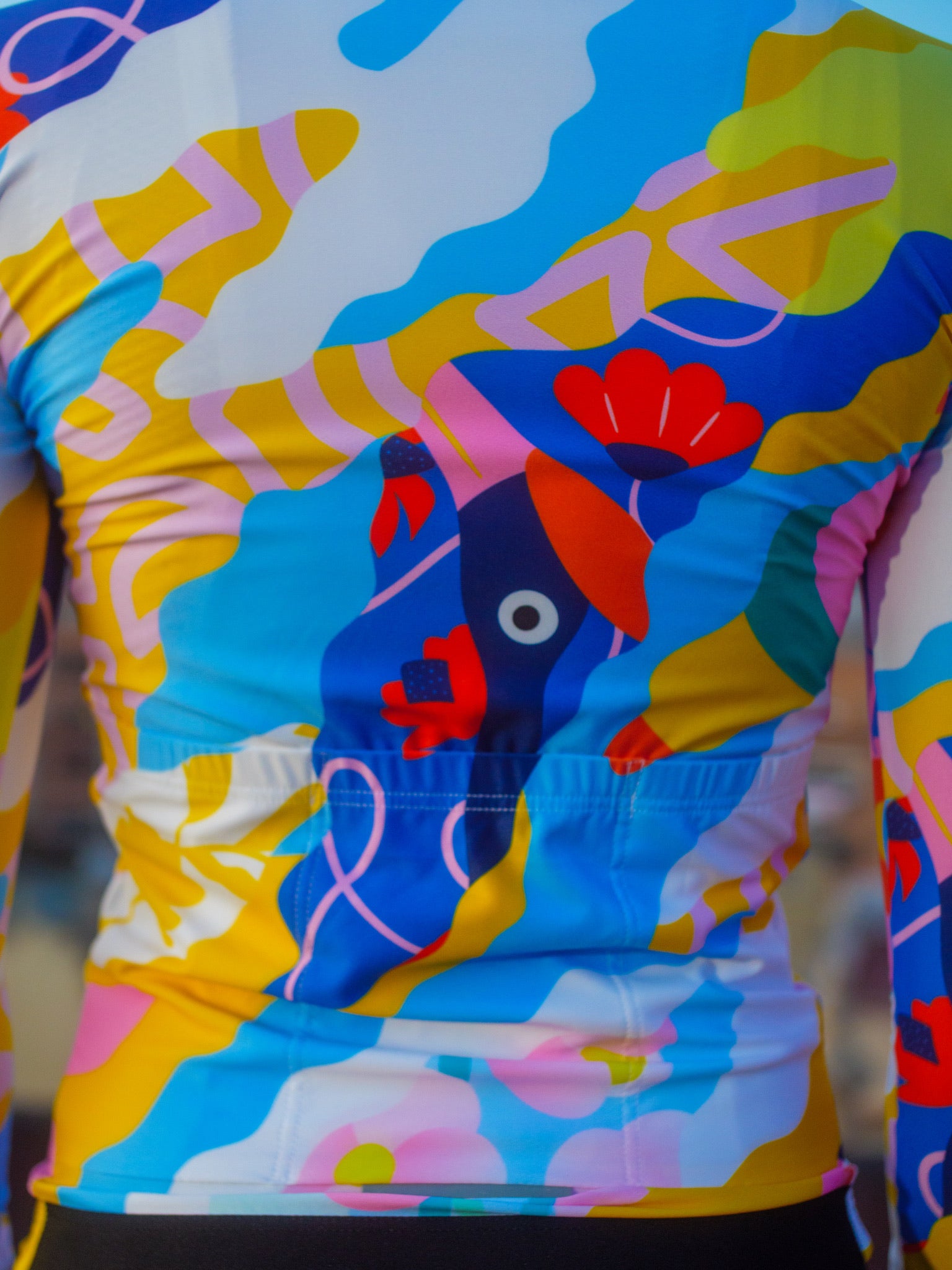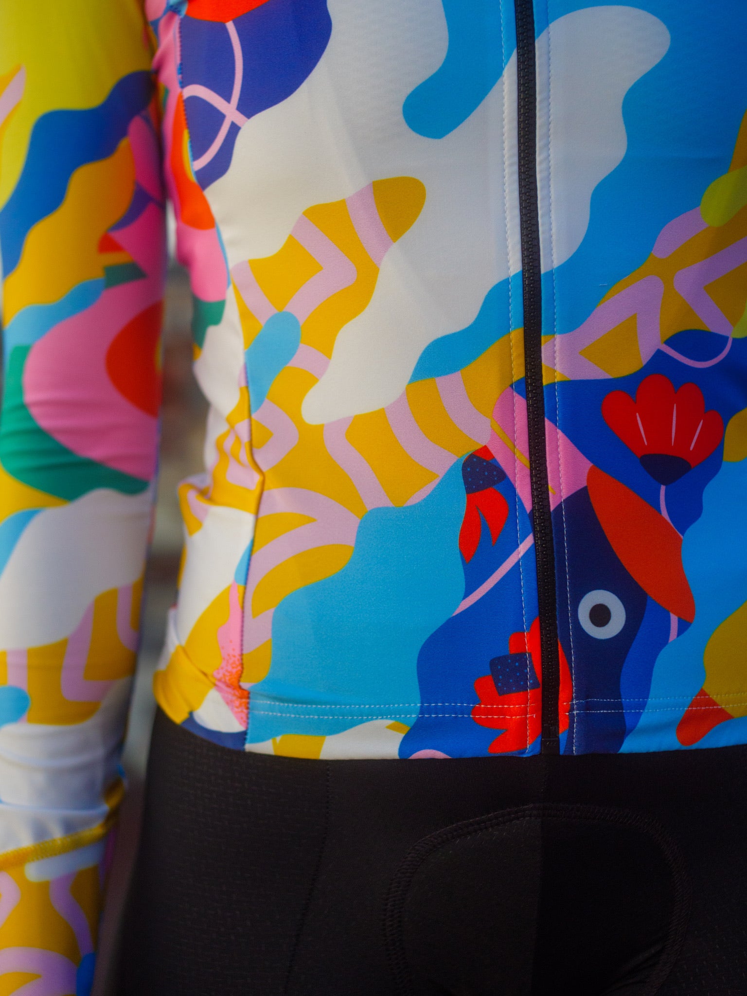 The Stickman Brolga 2 Long Sleeve adds warmth to your ride with the same captivating design and bold colours that define the windbreaker. Built for cooler days, this jersey is both a canvas of abstract expression and a high-performance layer. The smooth, breathable fabric adapts to your movements, making it perfect for those crisp mornings and evening rides. Wear the Brolga 2 Long Sleeve to channel artistic energy and stay effortlessly stylish on every route.