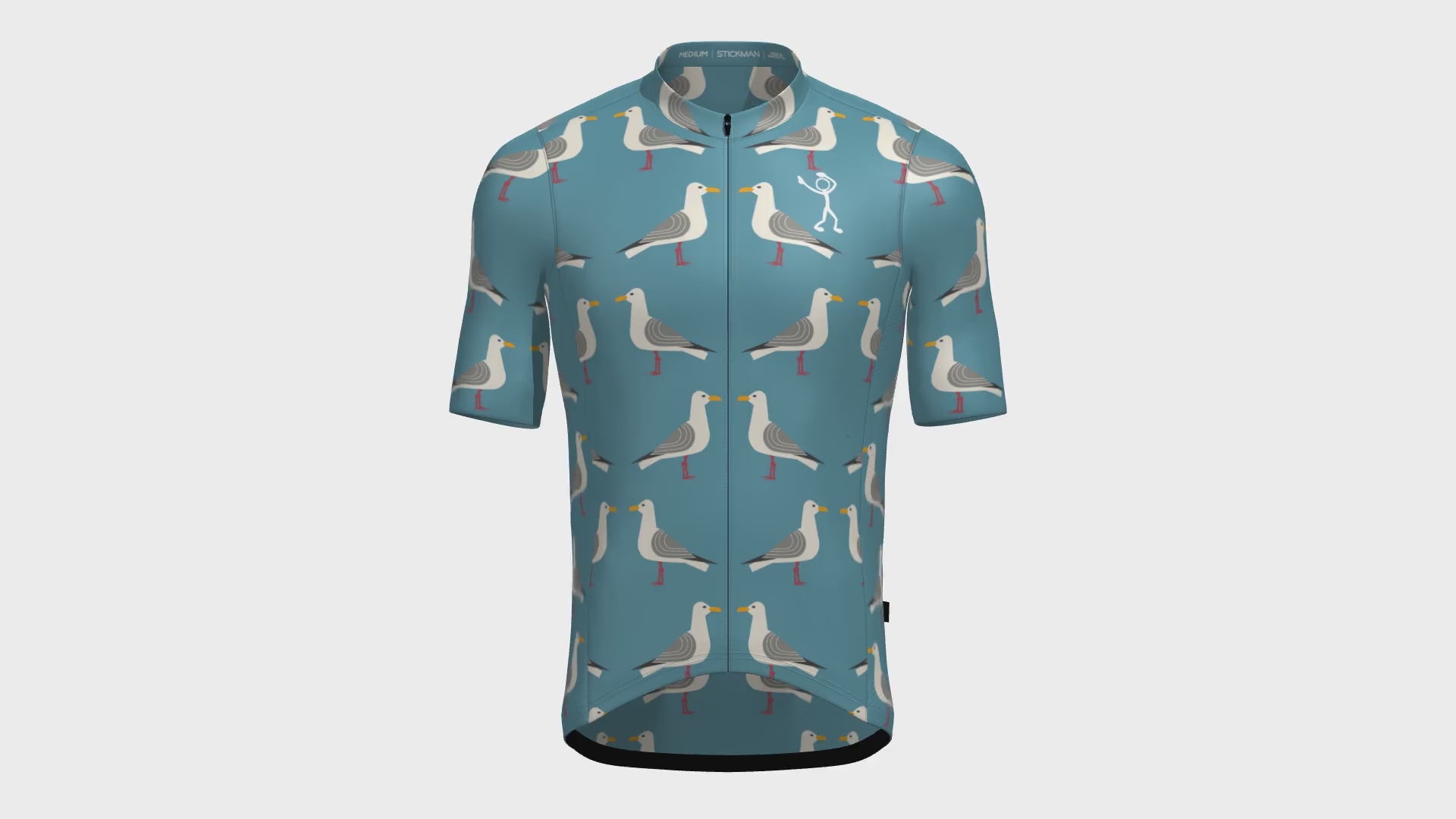 You’ll look as cool as a coastal day, as you ride along with the sea breeze, in our Stickman ‘Seagull’ Cycling Jersey. The soft and light blue is contrasted with the graphic design of sea birds, to produce a chilled out, summer cycling jersey for a sunny coastal day on two-wheels.