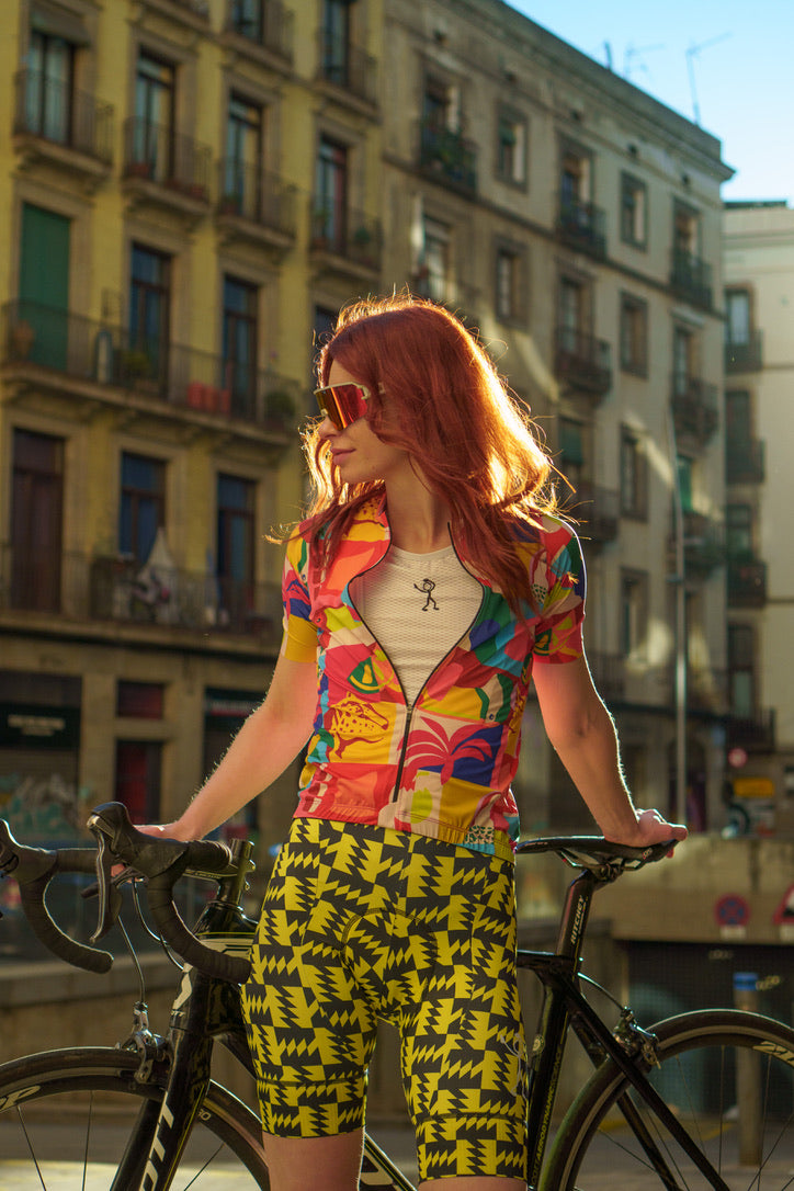 Our new Stickman Tropical short sleeve jersey is an eclectic mix of colourful artworks, reflecting the vibrant life of a tropical jungle. It’s a patchwork rainbow of fruits, flora and wildlife, to take you on your own adventures.