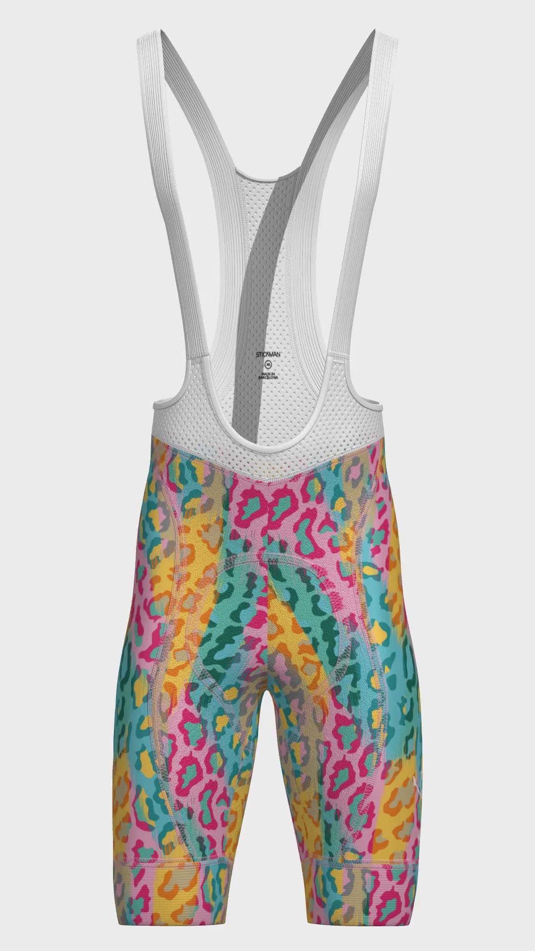 Nothing says ‘WOW’ like our Stickman ‘Rainbow Leopard’ Cycling Bib Shorts and Jersey. The lively blues blend perfectly with the vibrant yellow and pastel pinks in a rainbow leopard design that shows off your feminine form and wild side. This is the purr-fect design for cool as a cat, girls – charismatic and attention seeking. You want to be noticed, and with this modern design, you’ll be the queen of the cycling jungle!